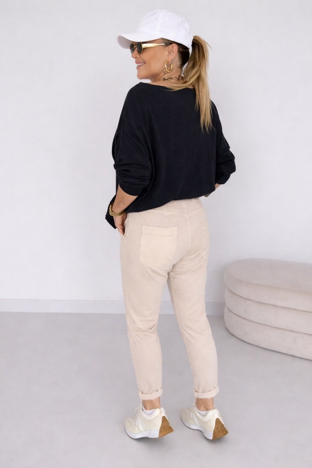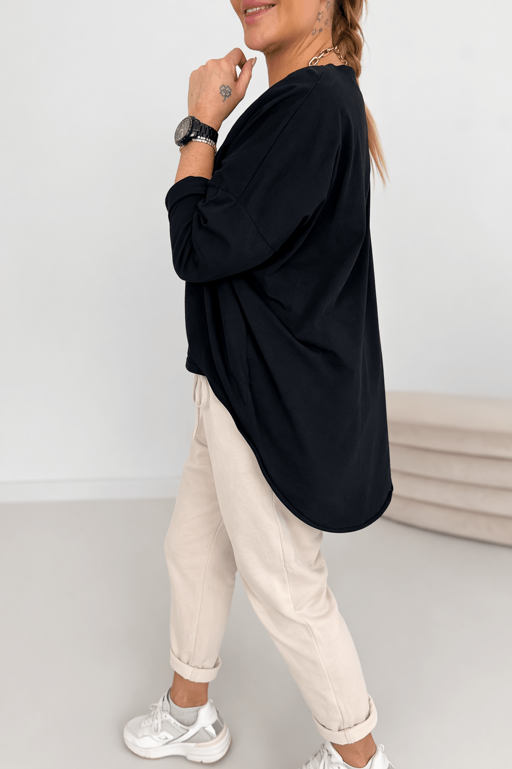 Das Model hat die Konfektionsgröße 38 (1,70m)