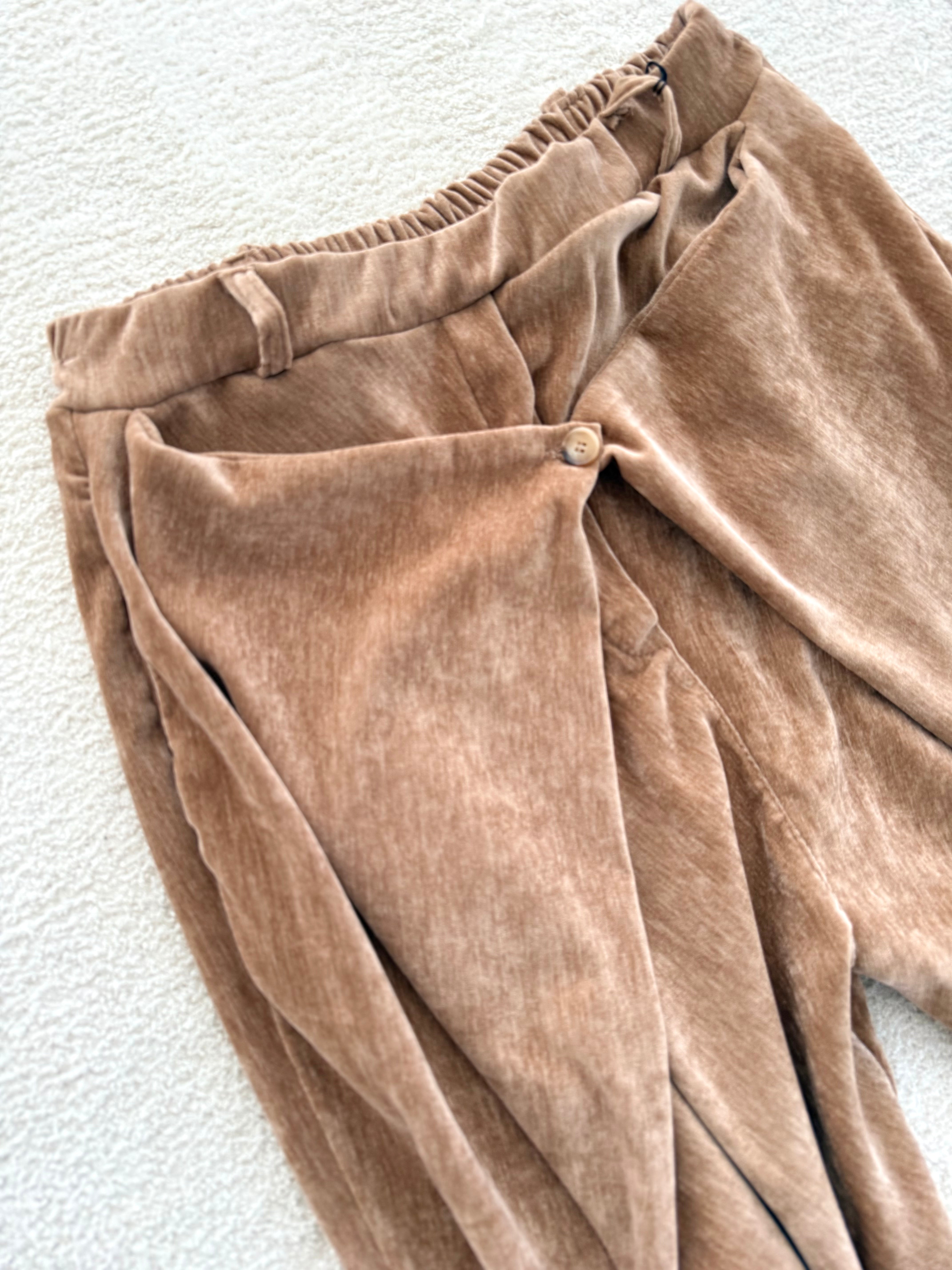 Überkreuzte Faltenoptik mit einem Knopf