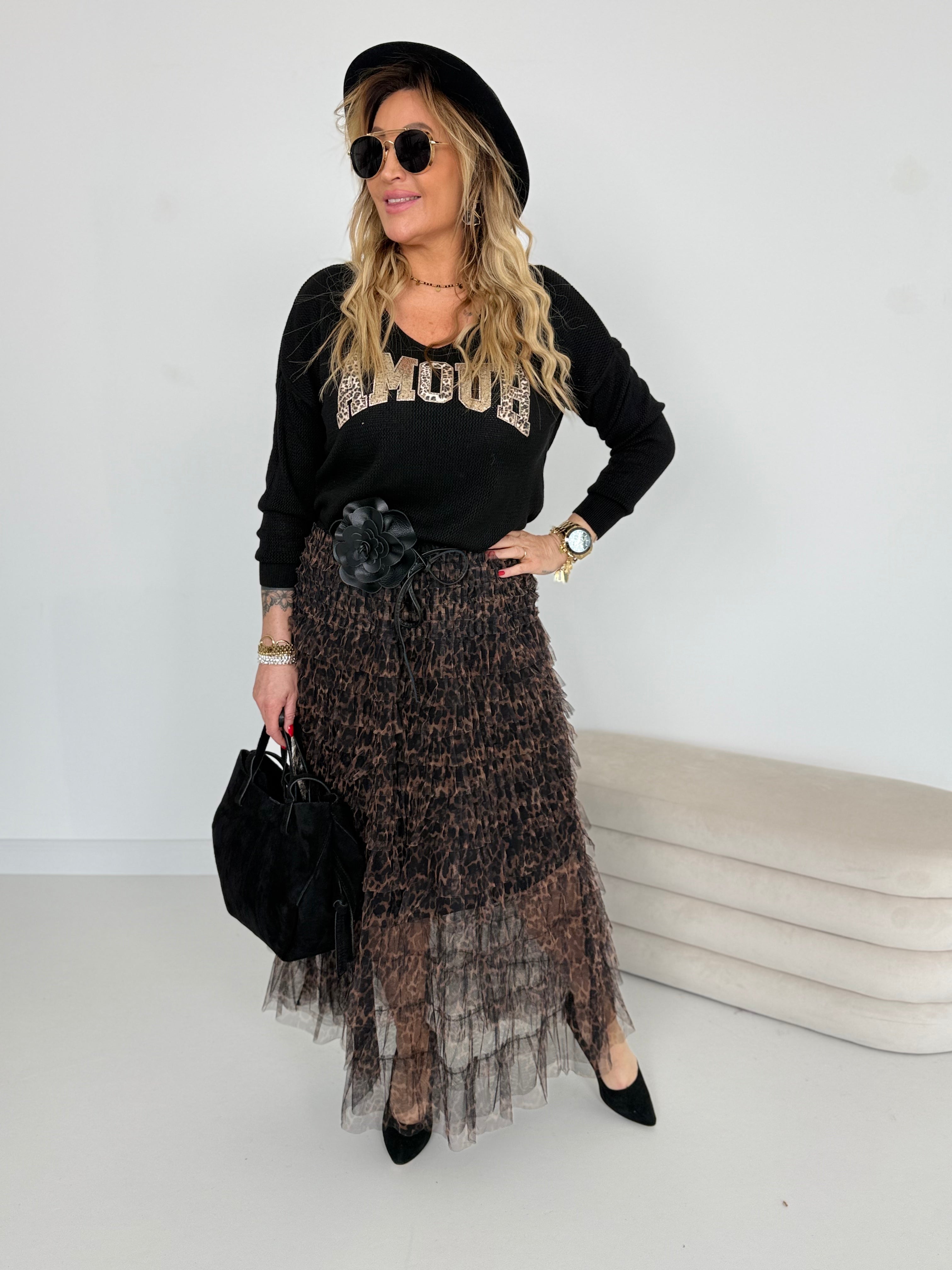 Devant orné de sequins à imprimé léopard && paillettes